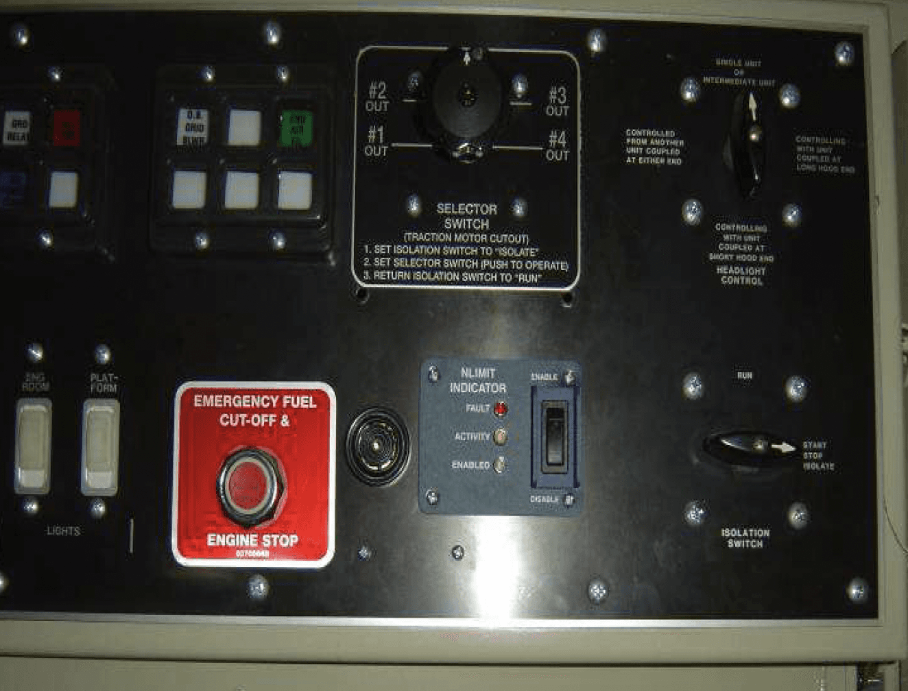 The NLIMIT Indicator operated in conjunction with the NLIMIT or NFORCE system. This panel contains three LEDs (red, yellow, and green) used to inform operating personnel of the current system status.